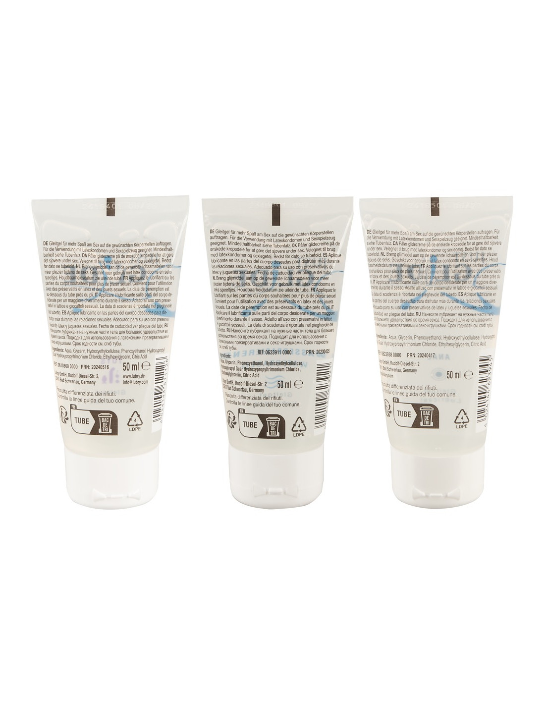 3 x 50 ml “Vandbaseret”, “Legetøj” og “Anal”.