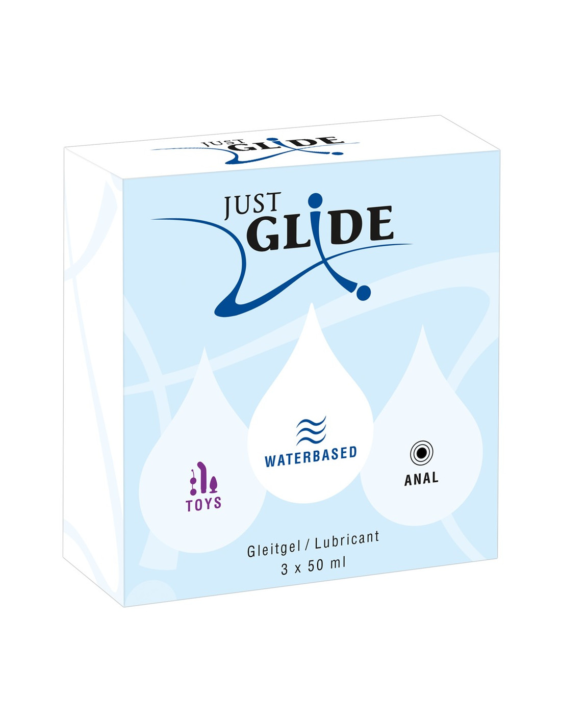 3 Just Glide-glidecremer i én økonomipakke. Den vandbaserede glidecreme er 100% vegansk og er også velegnet til sensitiv hud. Fedter ikke og er oliefri. Vaskbar. Sikker at bruge med latex kondomer.