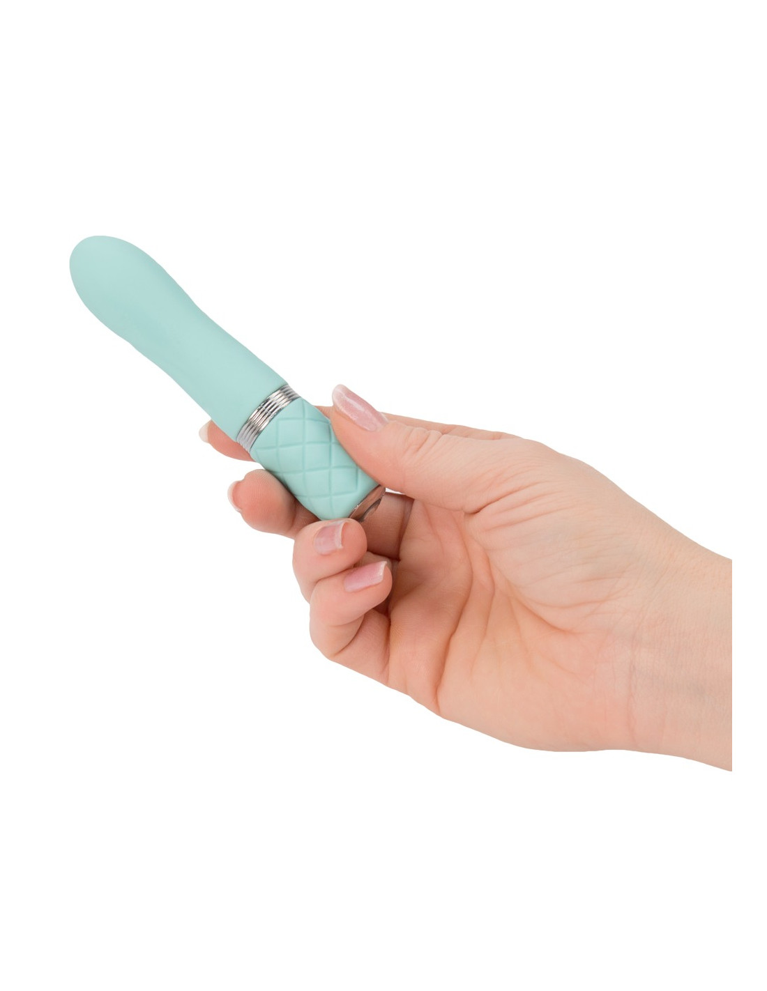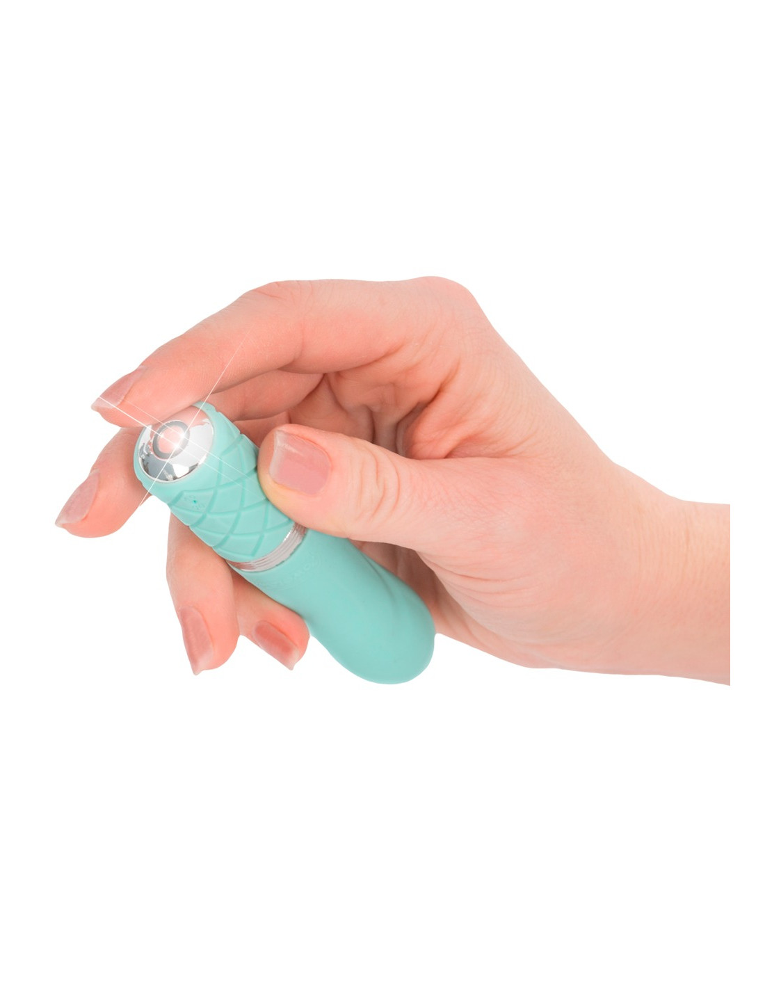 Denne Turkise minivibrator har virkeligt alt, hvad et kvinde hjertet begærer: en flot farve, formskønne rundinger, en silkeagtig overflade, en smule glimmer og naturligt ophidsende vibrationer.